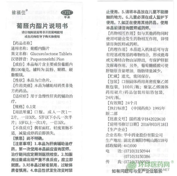 華中藥業(yè)葡醛內(nèi)酯片說明書文字版