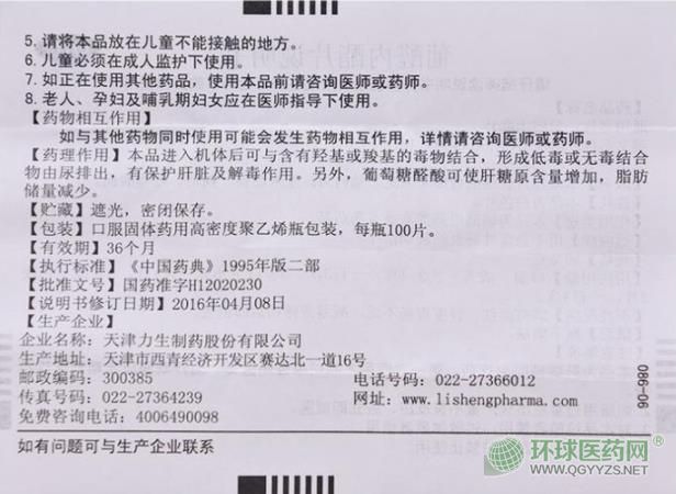 天津力生制藥葡醛內(nèi)酯片說明書圖片版