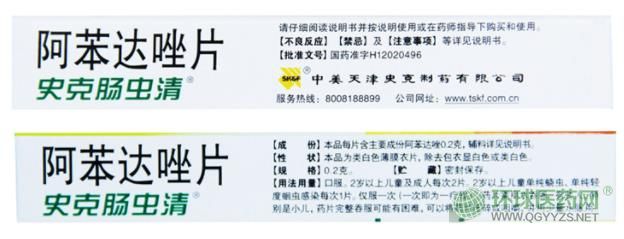 中美史克阿苯達(dá)唑片(腸蟲(chóng)清片)外包裝