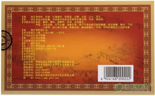 【成份】:銀杏葉、丹參、燈盞細(xì)辛、絞股藍(lán)、山楂、大蒜、三七、艾片。