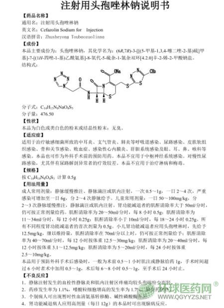 華北制藥注射用頭孢唑林鈉說明書圖片版