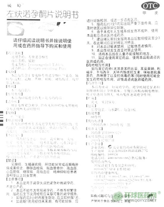毓婷左炔諾孕酮片說明書文字版