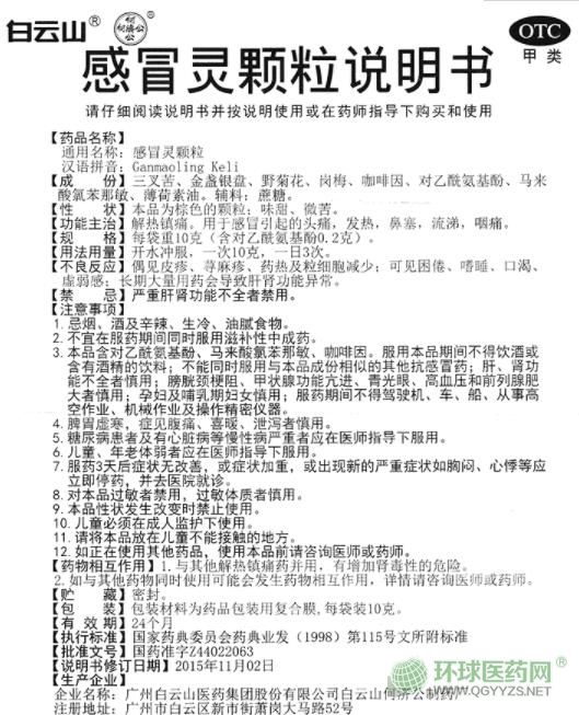 【藥品名稱】 感冒靈顆粒(白云山)