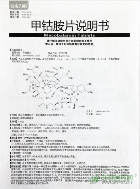 亞寶藥業(yè)甲鈷胺片說(shuō)明書文字版