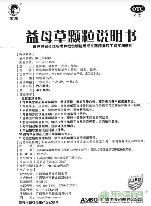 廣西靈峰益母草顆粒(金雞)說明書文字版