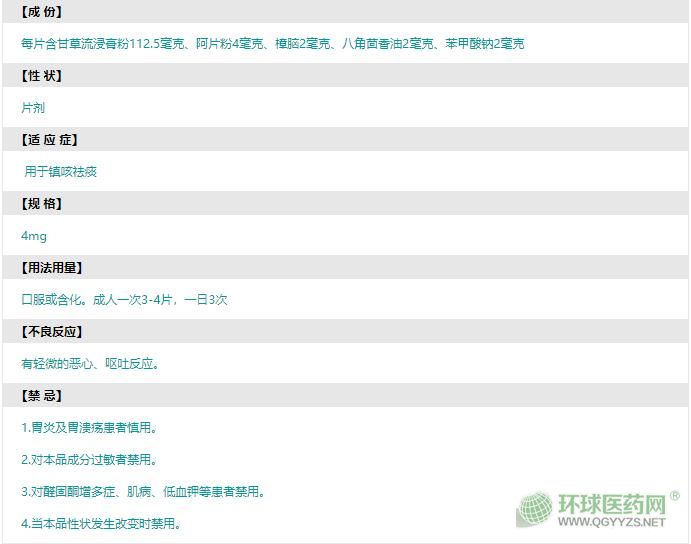 西安利君復(fù)方甘草片說明書圖片版