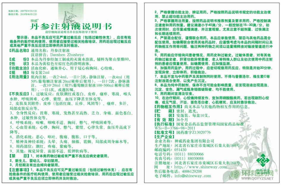 神威藥業(yè)丹參注射液說明書圖片版