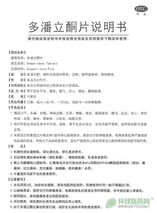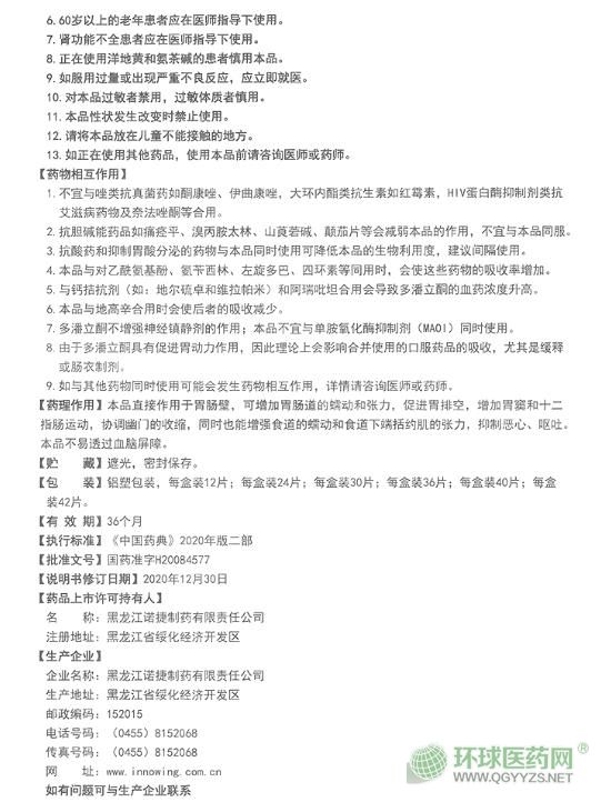 黑龍江諾捷康多潘立酮片說明書文字版