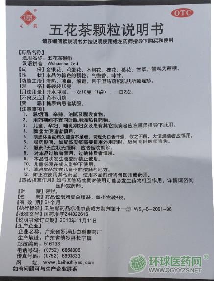 觀鶴五花茶顆粒說明書文字版