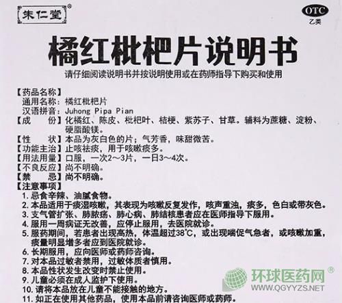 朱仁堂橘紅枇杷片說(shuō)明書文字版