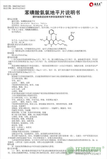 鵬鷂藥業(yè)苯磺酸氨氯地平片文字版
