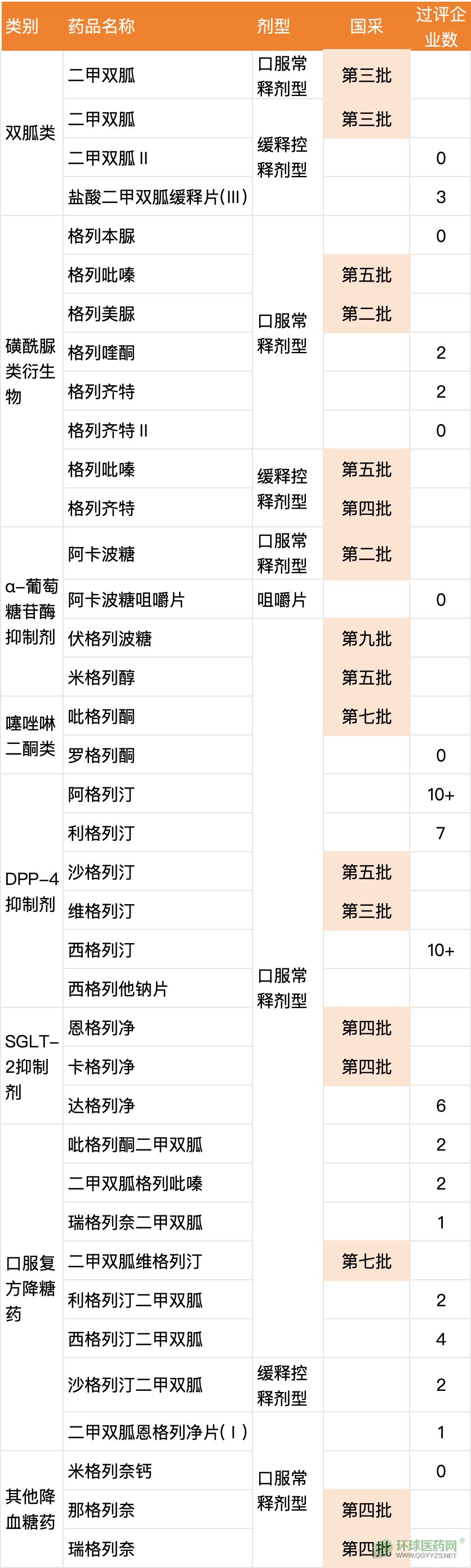 二甲雙胍、阿卡波糖、沙格列汀、維格列汀、恩格列凈、卡格列凈、瑞格列奈等銷售金額大的,全部完成國采。