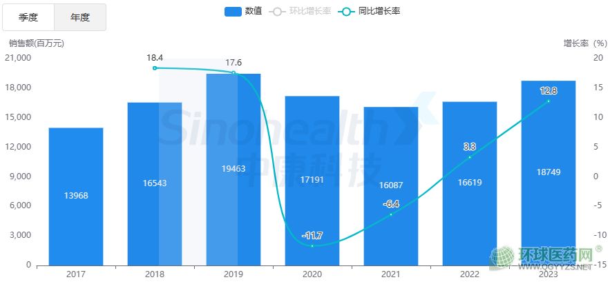 據(jù)中康開思系統(tǒng)顯示,2023年口服降糖藥國(guó)內(nèi)等級(jí)醫(yī)院和零售市場(chǎng)銷售總額超308億元。其中,在國(guó)內(nèi)等級(jí)醫(yī)院銷售額達(dá)187億元,同比增長(zhǎng)12.8%。