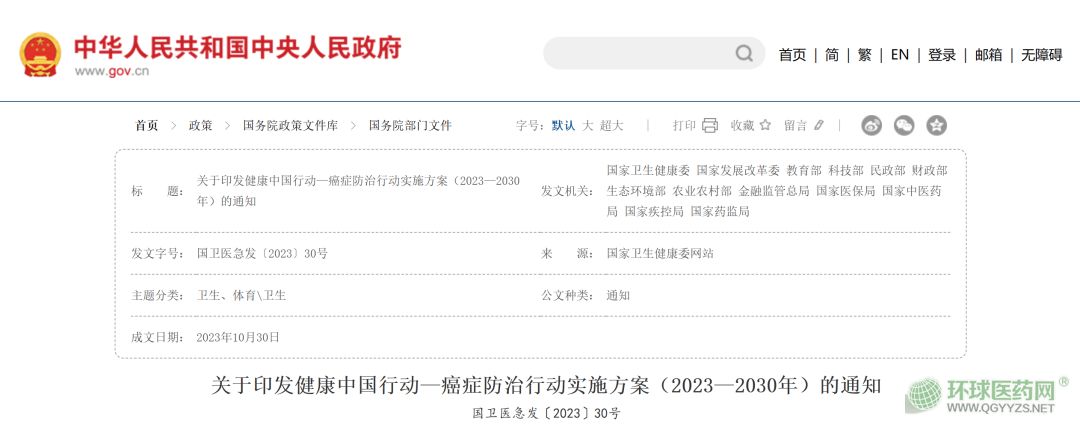 健康中國行動—癌癥防治行動實施方案(2023—2030年)