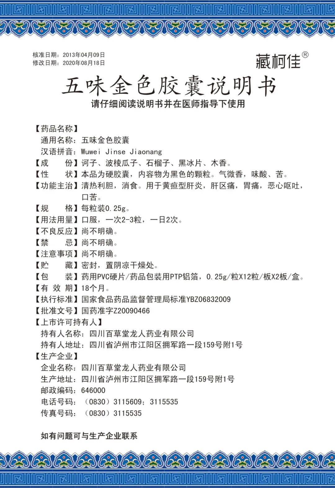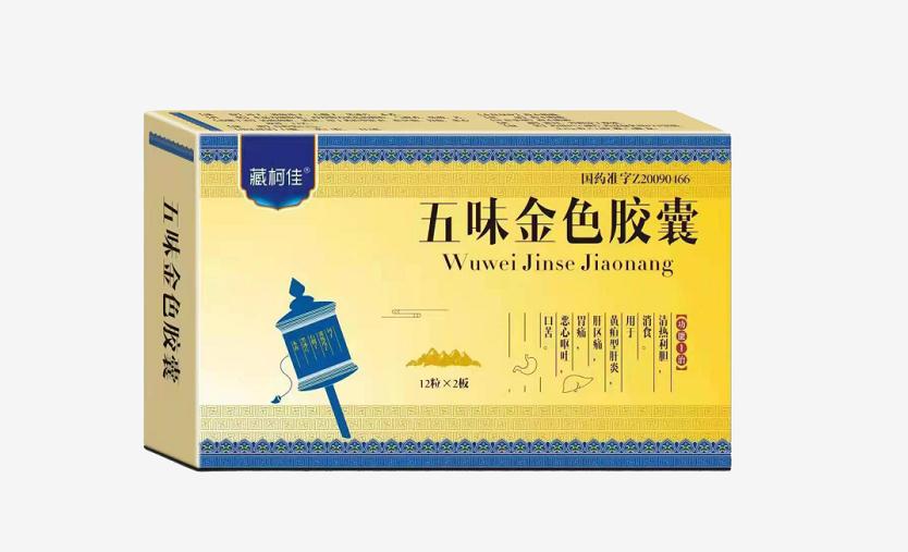 藏柯佳-五味金色膠囊,適用于黃疸型肝炎引起的肝區(qū)痛、胃痛、惡心嘔吐,腹脹,口苦,黃疸,胃腸不適等癥,以及慢性肝炎引起的肝區(qū)痛,胃痛,胃腸道不適,膽囊炎,黃疸等癥,具有快速改善患者的臨床癥狀、保肝護(hù)肝、殺菌、抗病毒、退黃等功效。