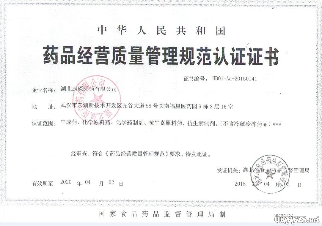 - 藥品經(jīng)營質(zhì)量管理規(guī)范認(rèn)證證書