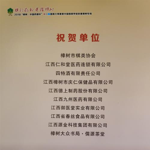 江西御醫(yī)堂實業(yè)有限公司熱烈祝賀2018年“樟樹.中國藥都杯”中日韓圍棋大師賽圓滿閉幕。