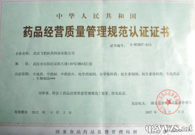 - 藥品經(jīng)營質(zhì)量管理規(guī)范認(rèn)證證書