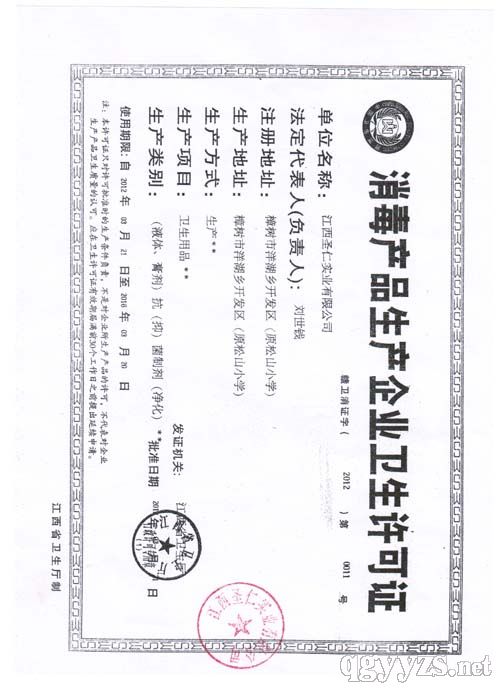 - 消毒產(chǎn)品生產(chǎn)企業(yè)衛(wèi)生許可證
