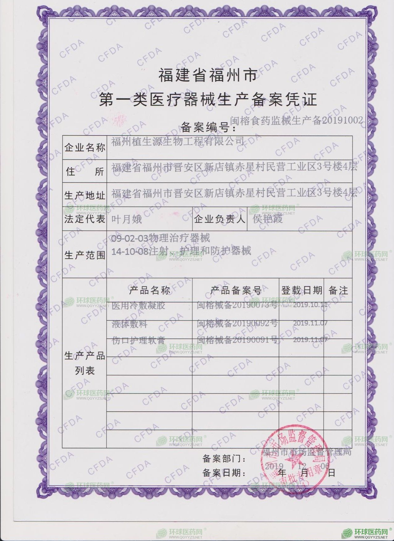 - 醫(yī)療器械號生產(chǎn)備案憑證