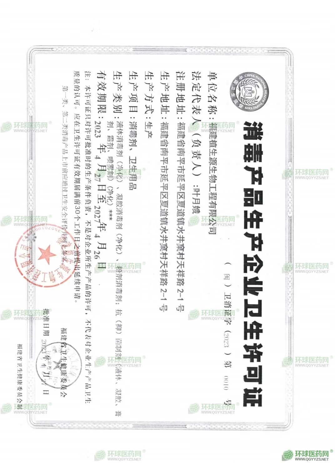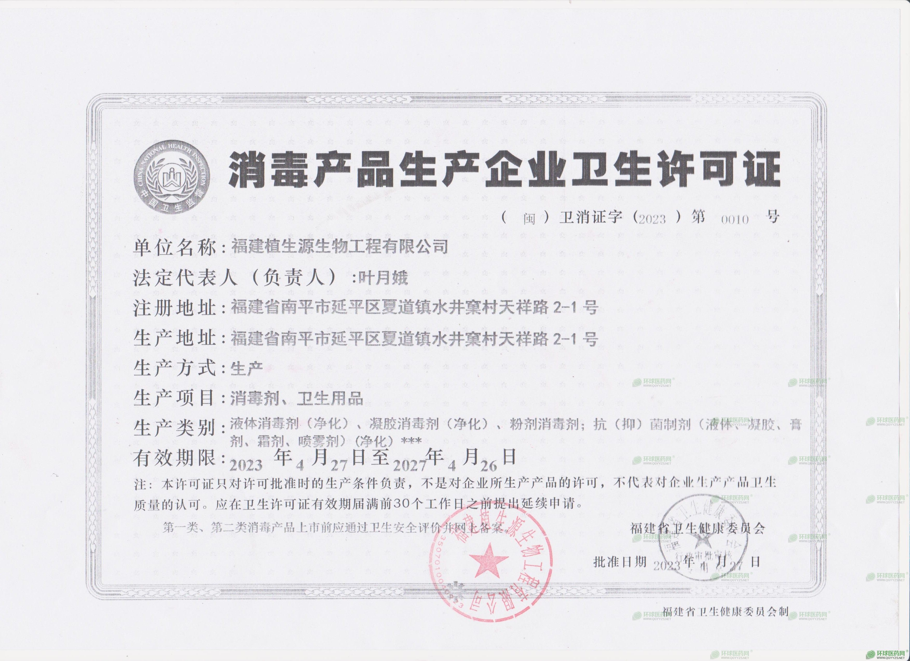 - 消毒產(chǎn)品生產(chǎn)衛(wèi)生許可證