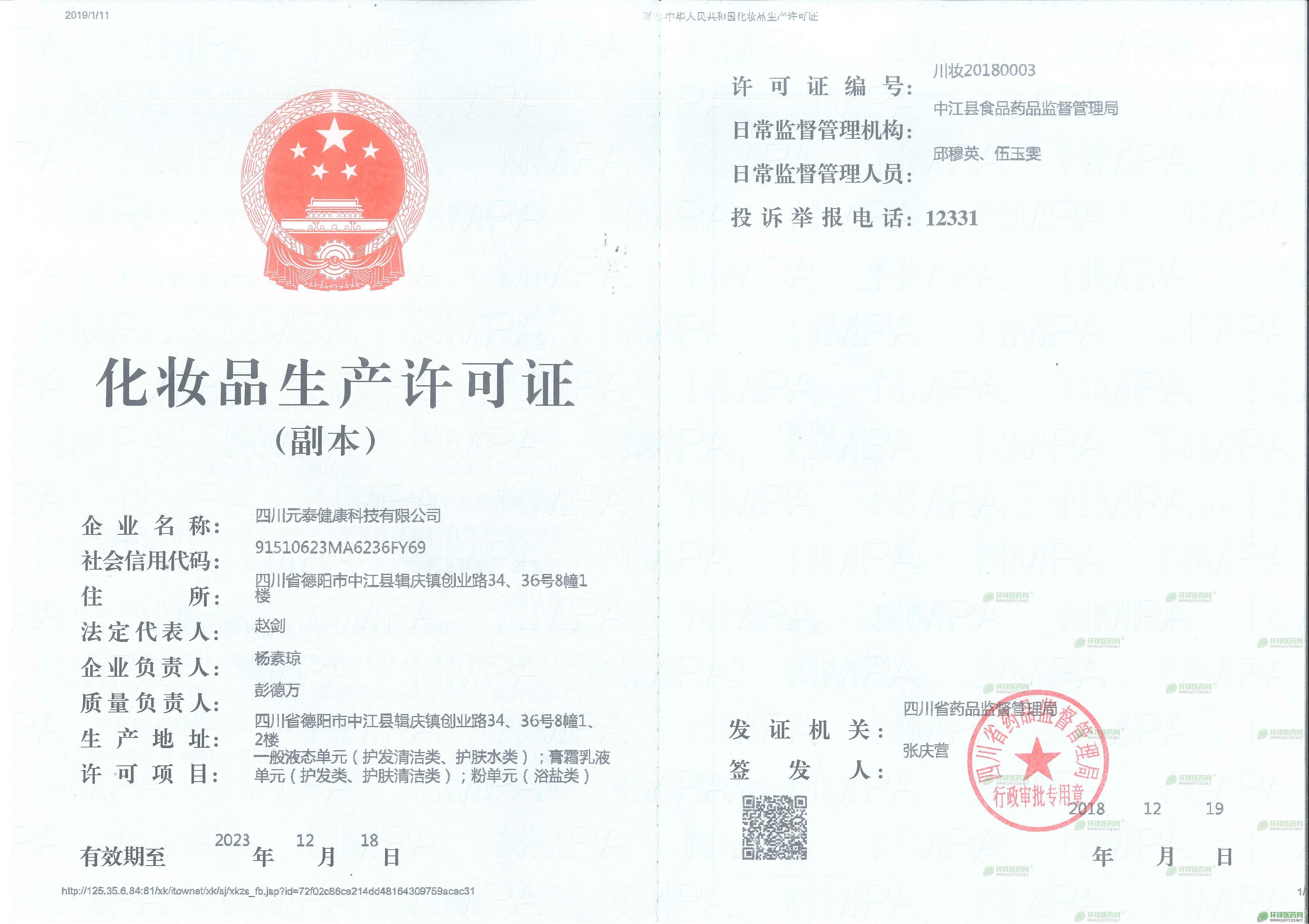 - 化妝品生產(chǎn)企業(yè)衛(wèi)生許可證