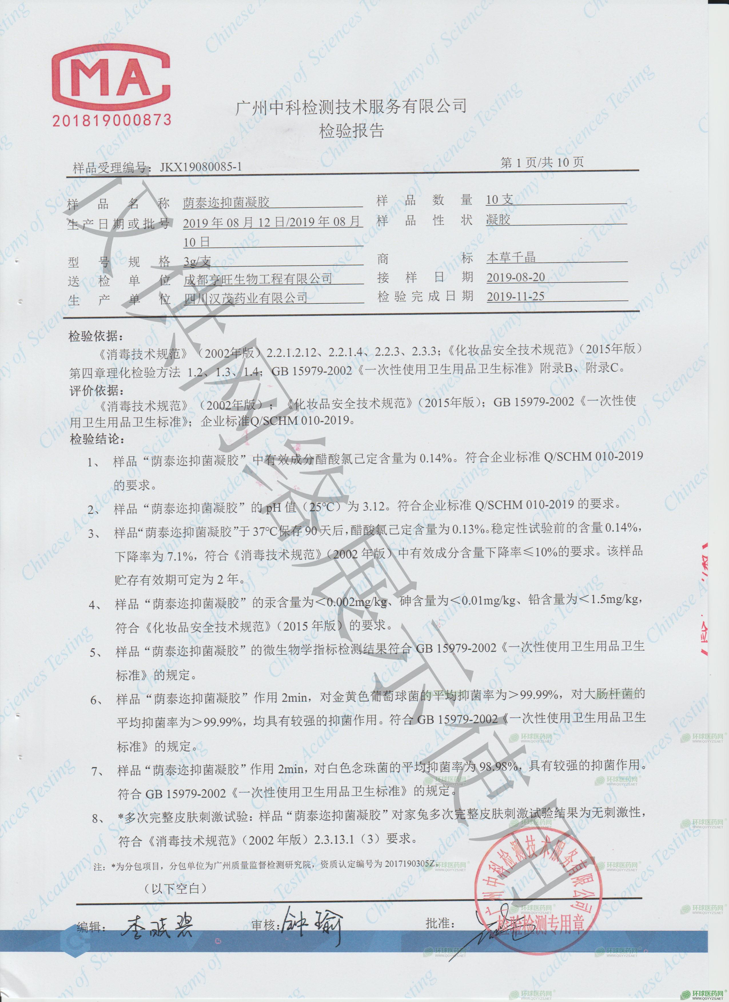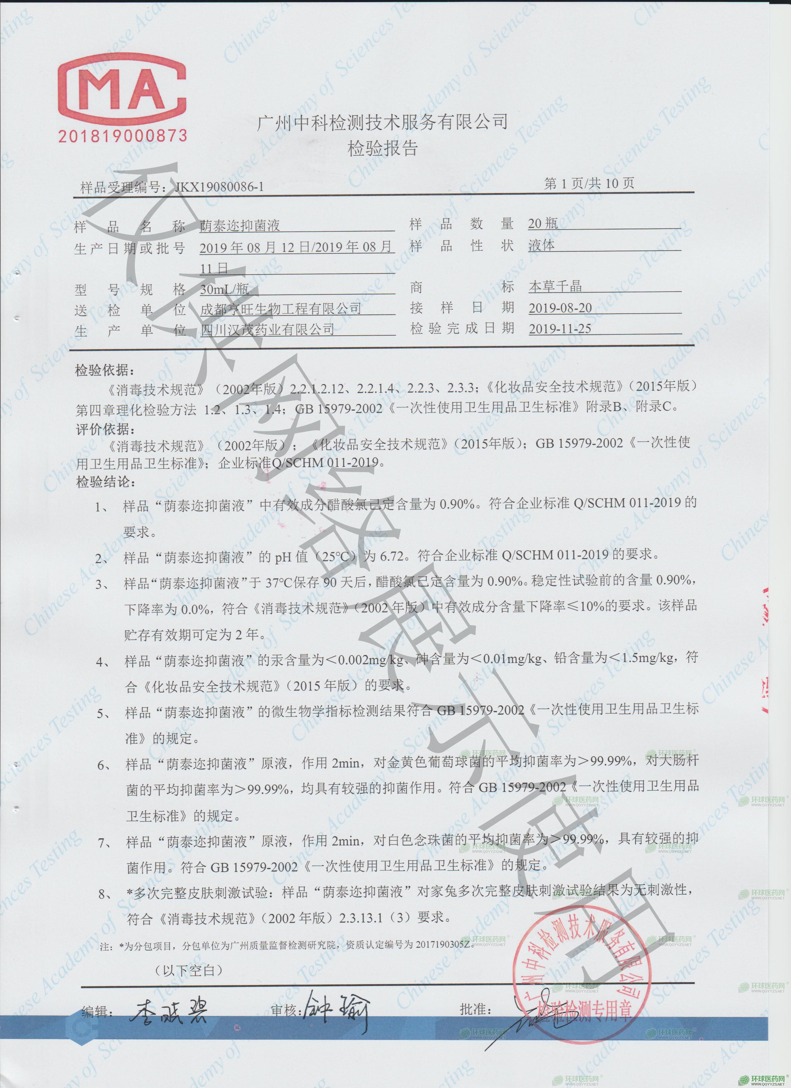 - 蔭泰邇顆粒洗液檢測報(bào)告