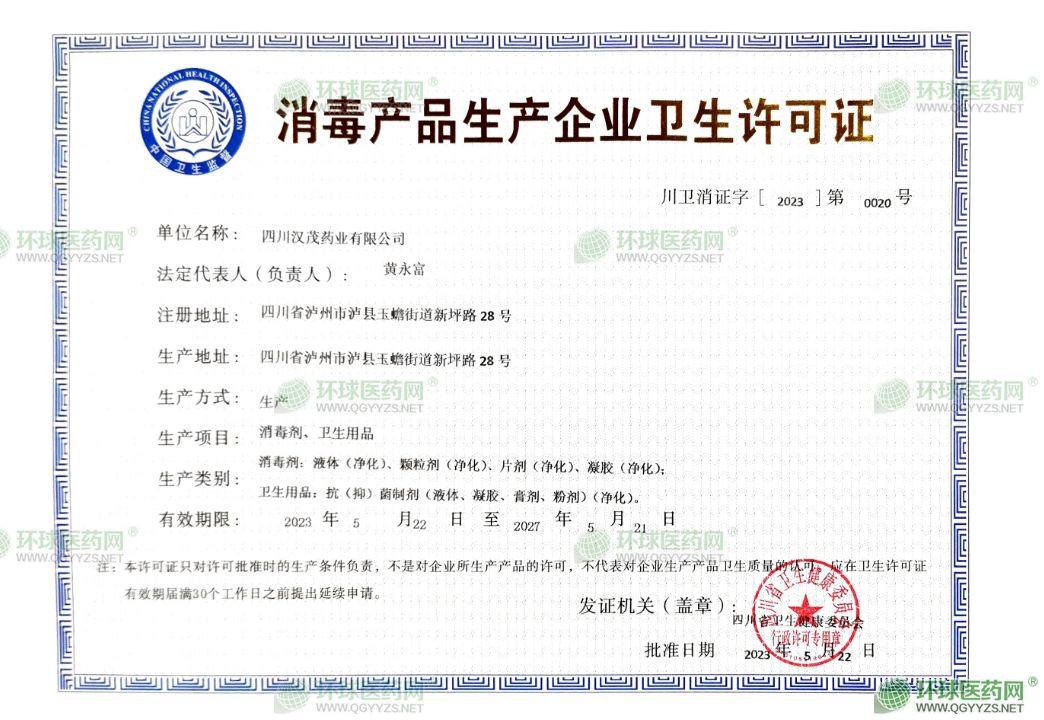 - 消毒產(chǎn)品生產(chǎn)企業(yè)衛(wèi)生許可證