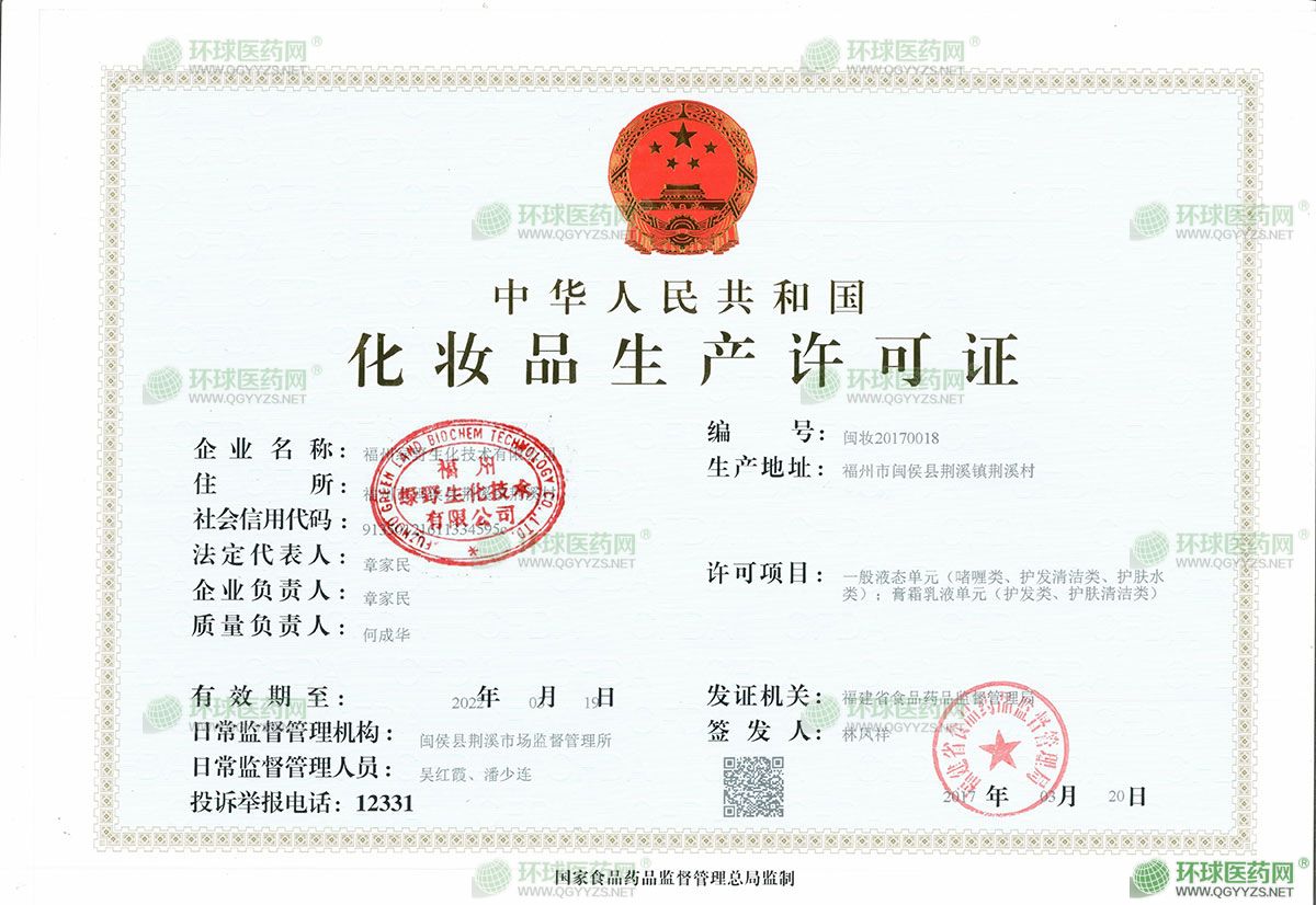 - 化妝品生產(chǎn)企業(yè)衛(wèi)生許可證