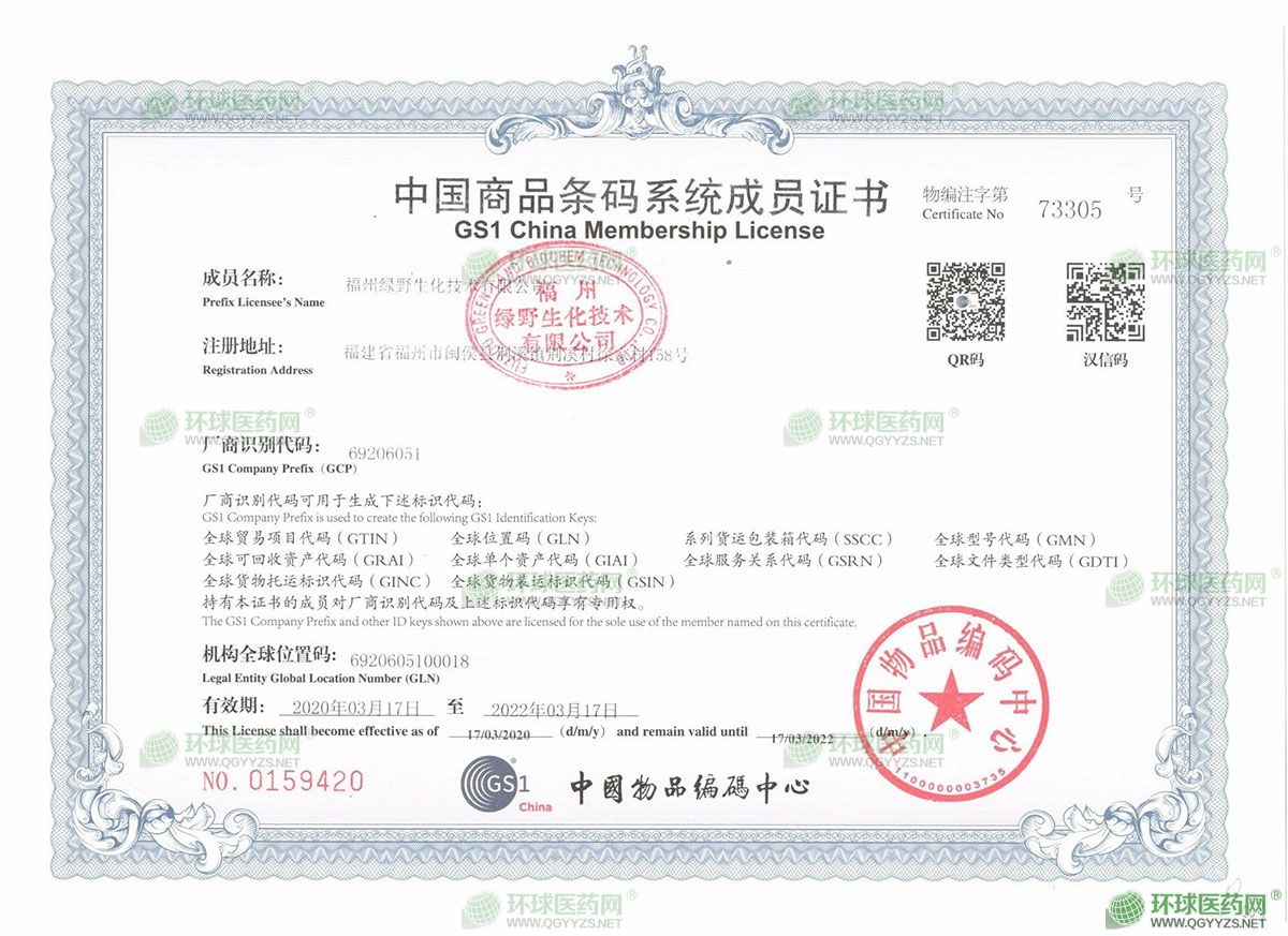 - 中國(guó)商品條碼系統(tǒng)成員證書(shū)