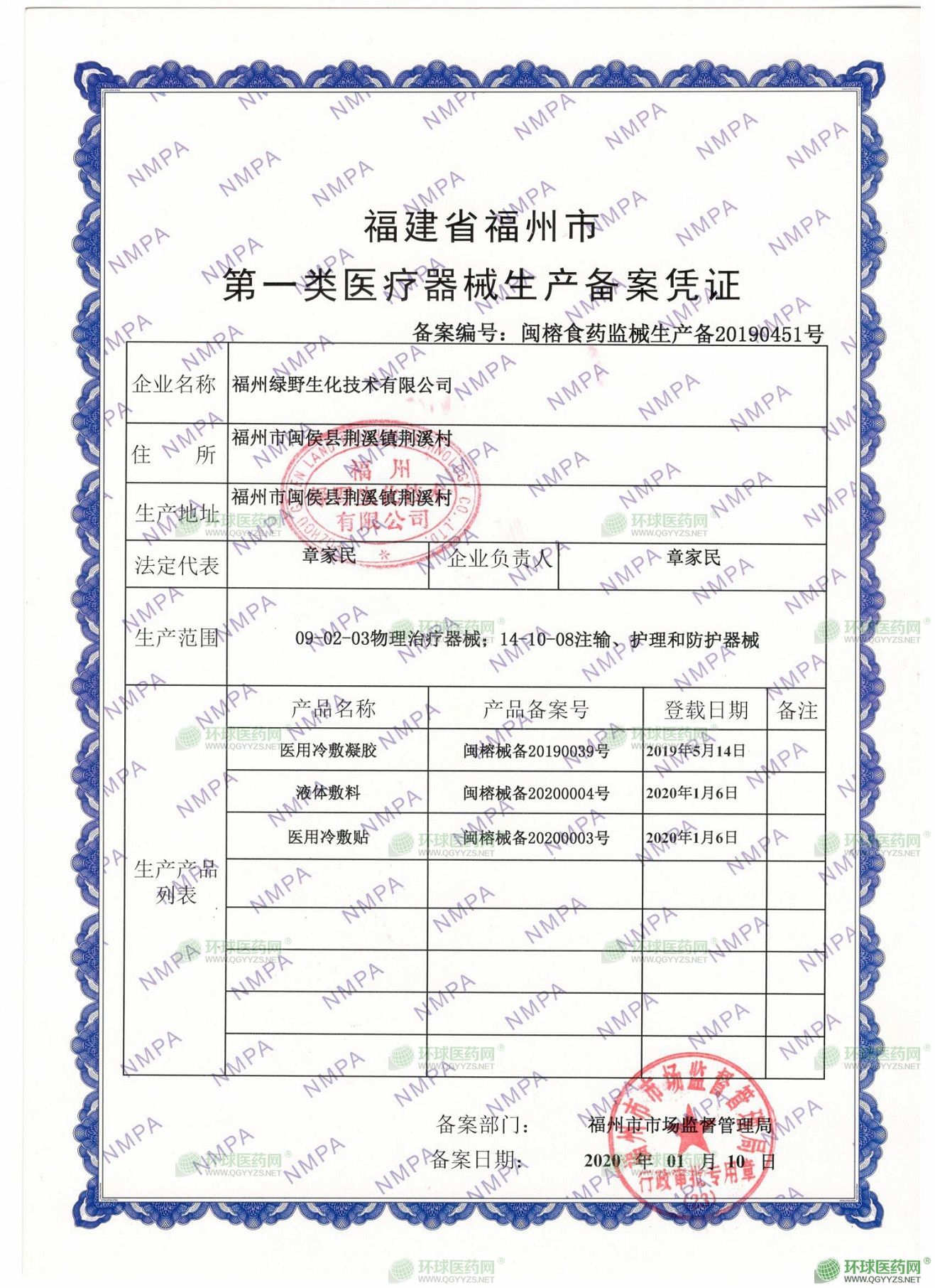 - 第一類醫(yī)療器械生產(chǎn)備案憑證