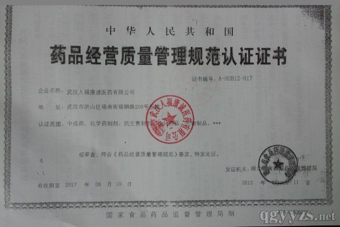 - 藥品經(jīng)營質(zhì)量管理規(guī)范認證證書