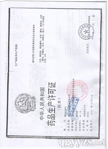 生產(chǎn)范圍: 湖北省仙桃市仙桃大道西段55號 片劑、顆粒劑、硬膠囊劑、合劑、露劑、糖漿劑、丸劑(含中藥提取車間)。***