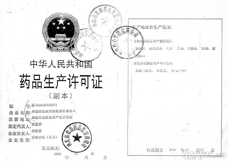 發(fā)證機(jī)關(guān): 河北省藥品監(jiān)督管理局