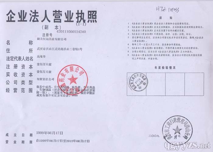 - 湖北恒通藥業(yè)有限公司營(yíng)業(yè)執(zhí)照副本