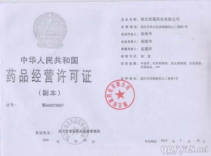 - 湖北恒通藥業(yè)有限公司藥品經(jīng)營(yíng)許可證
