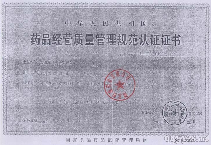 - 藥品經(jīng)營(yíng)質(zhì)量管理規(guī)范認(rèn)證證書(shū)