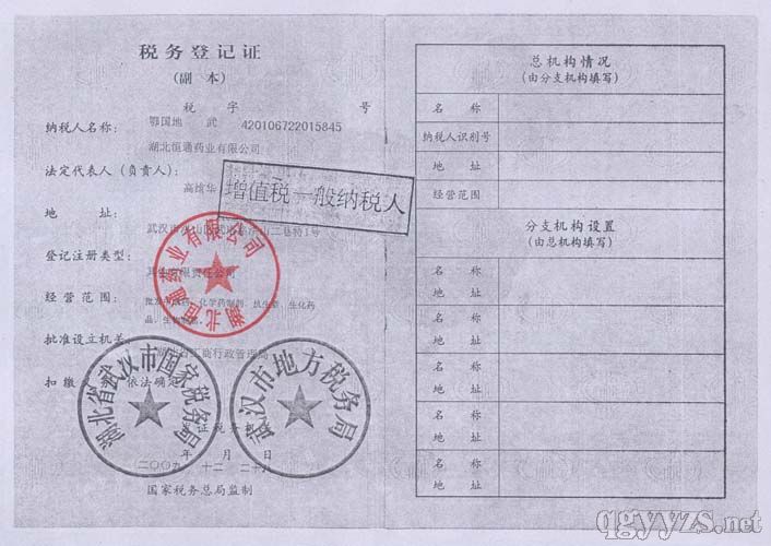 - 湖北恒通藥業(yè)有限公司稅務(wù)登記證