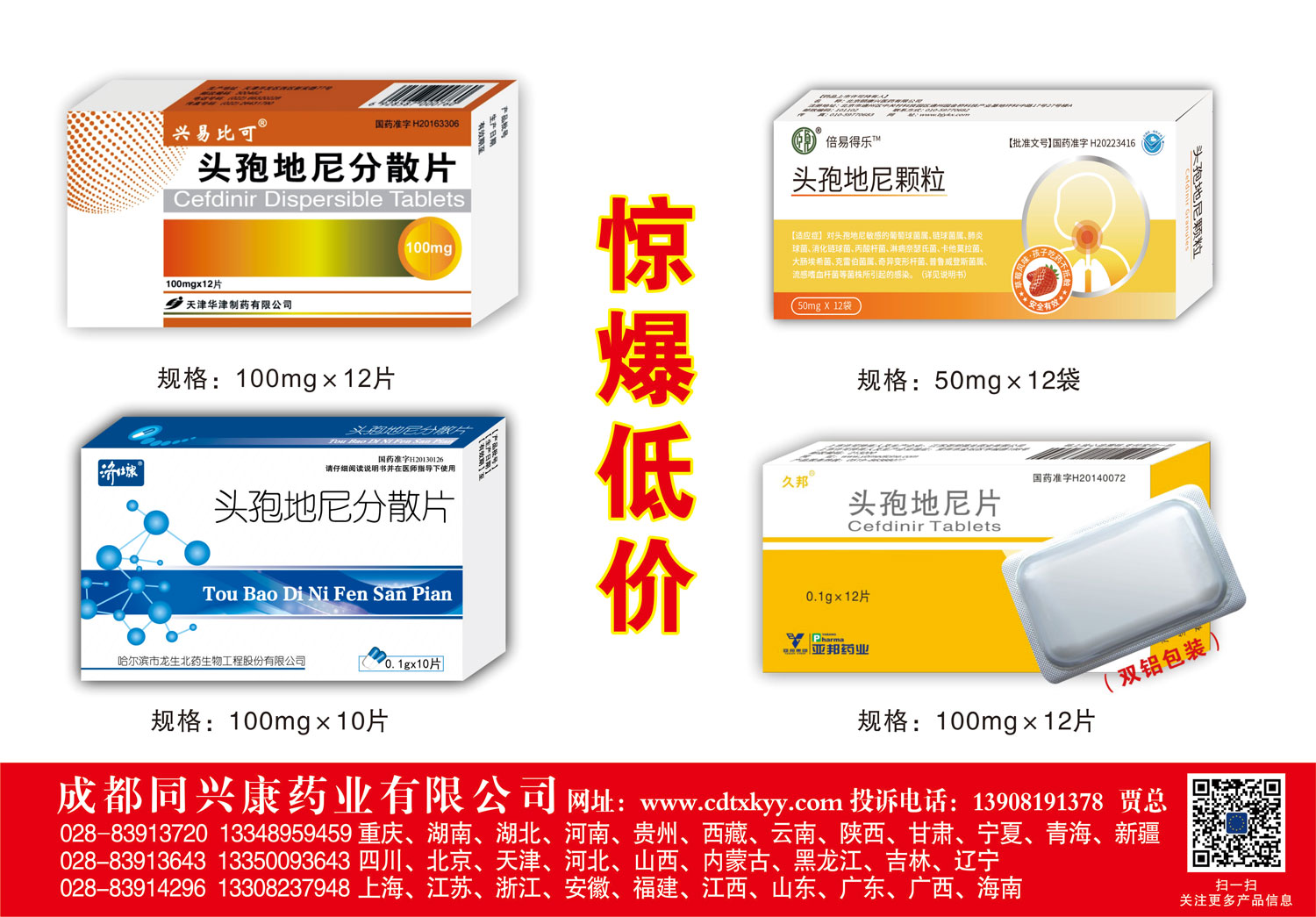 同興康:頭孢地尼招商,顆粒分散片多劑型,大廠(chǎng)家大品牌,服用方便,嚴(yán)格控銷(xiāo),禁止掛網(wǎng)