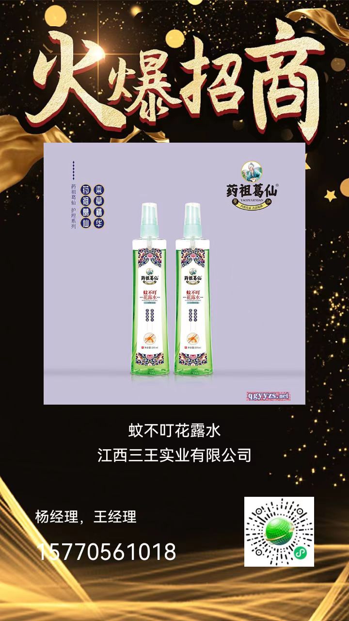 蚊子能傳播那么多疾病,還是避而遠(yuǎn)之為妙,我們就可以使用江西三王實(shí)業(yè)有限公司的花露水、蚊不叮抑菌噴劑等產(chǎn)品。