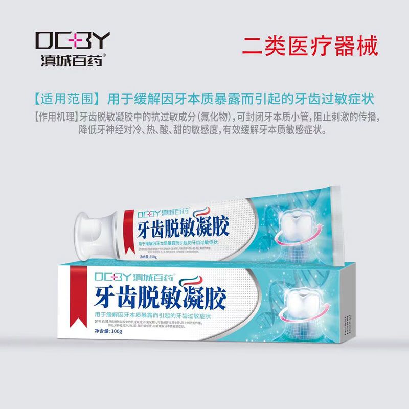 這款滇城百藥牙齒脫敏凝膠由氟化鈉、甘油、羧甲基纖維素鈉、純化水制成的凝膠及鋁塑管制成,用于緩解因牙本質暴露而引起的牙齒過敏癥狀。