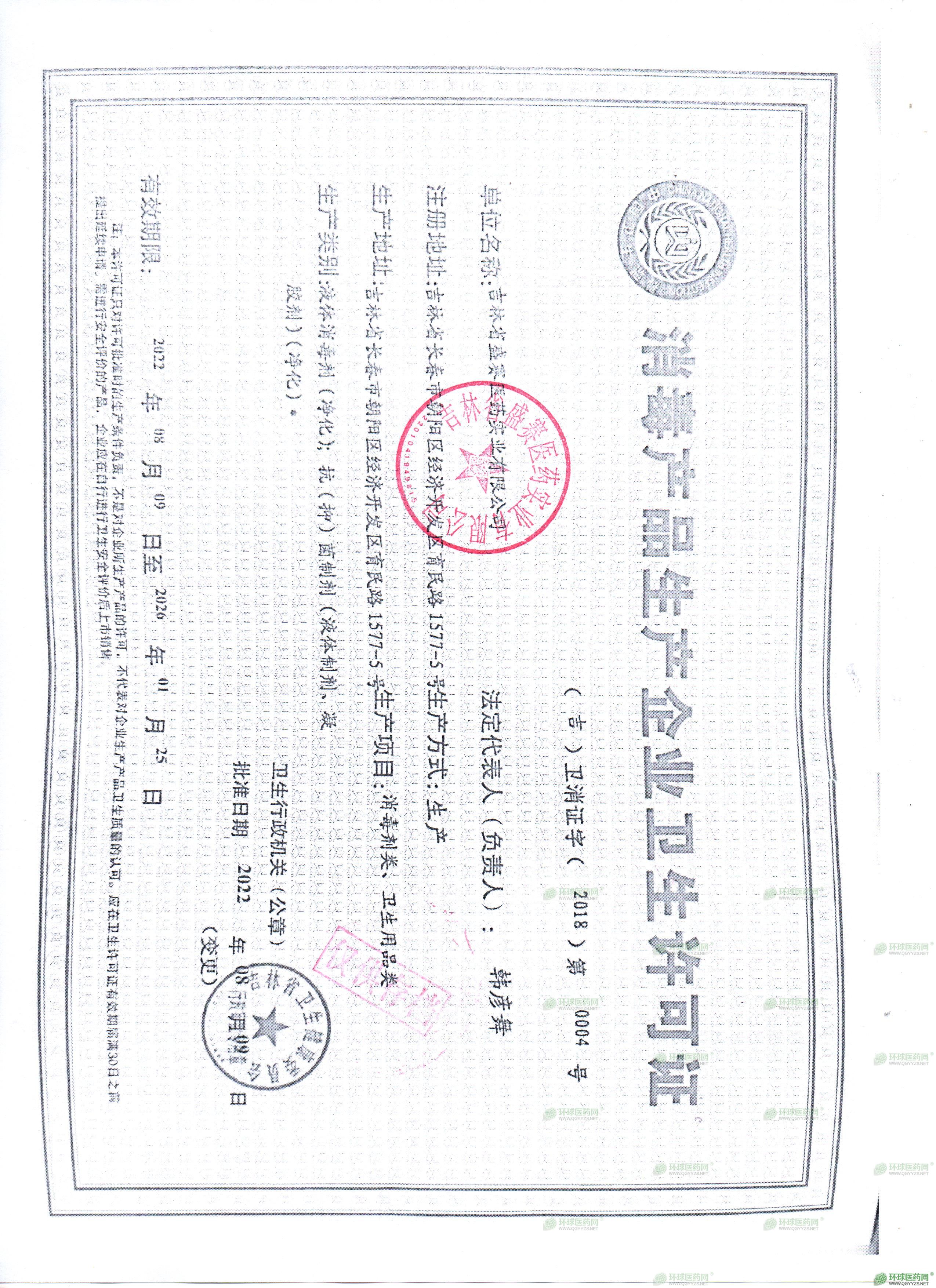 - 消毒產(chǎn)品生產(chǎn)企業(yè)衛(wèi)生許可證