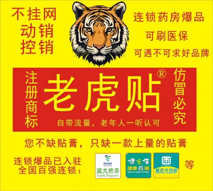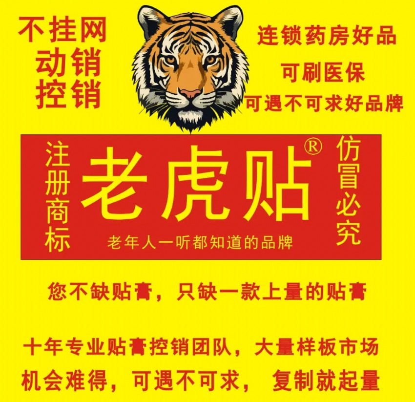 藥房爆品-老虎帖®,動銷上量快,控銷大空間!可刷醫(yī)保,帶廣告批文!