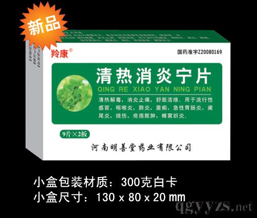 - 清熱消炎寧片 批準(zhǔn)文號: 國藥準(zhǔn)字Z20080169規(guī) 格: 9片*2板,400盒/件。