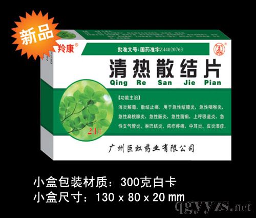 - 清熱散結(jié)片 批準(zhǔn)文號: 國藥準(zhǔn)字Z44020763規(guī) 格: 24片*1板,400盒/件。