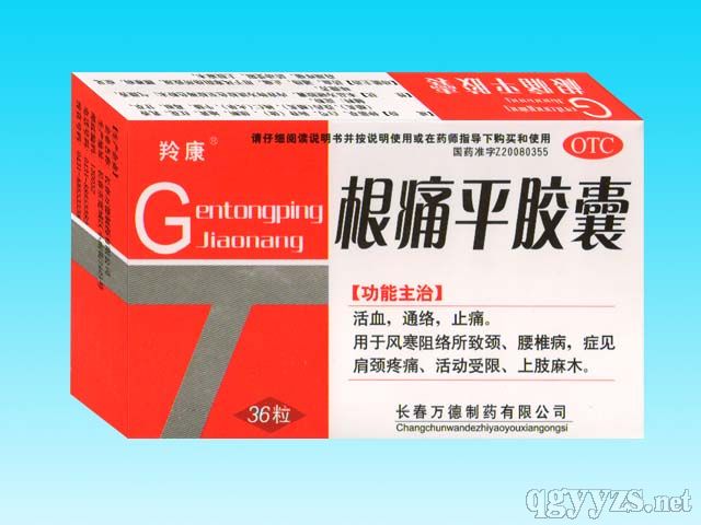 - 根痛平膠囊 批準(zhǔn)文號: 國藥準(zhǔn)字Z20080355規(guī) 格: 12粒/板*3板/盒,200盒