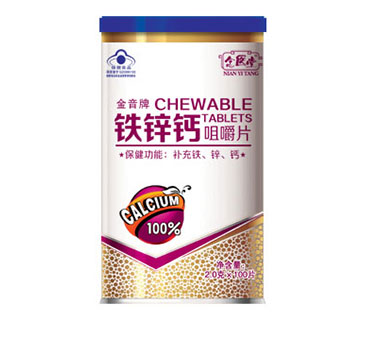 - 桶裝鐵鋅鈣咀嚼片 批準文號: 國食健字規(guī) 格: 2.0gX100片