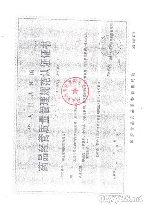 - 藥品經(jīng)營(yíng)質(zhì)量管理規(guī)范認(rèn)證證書
