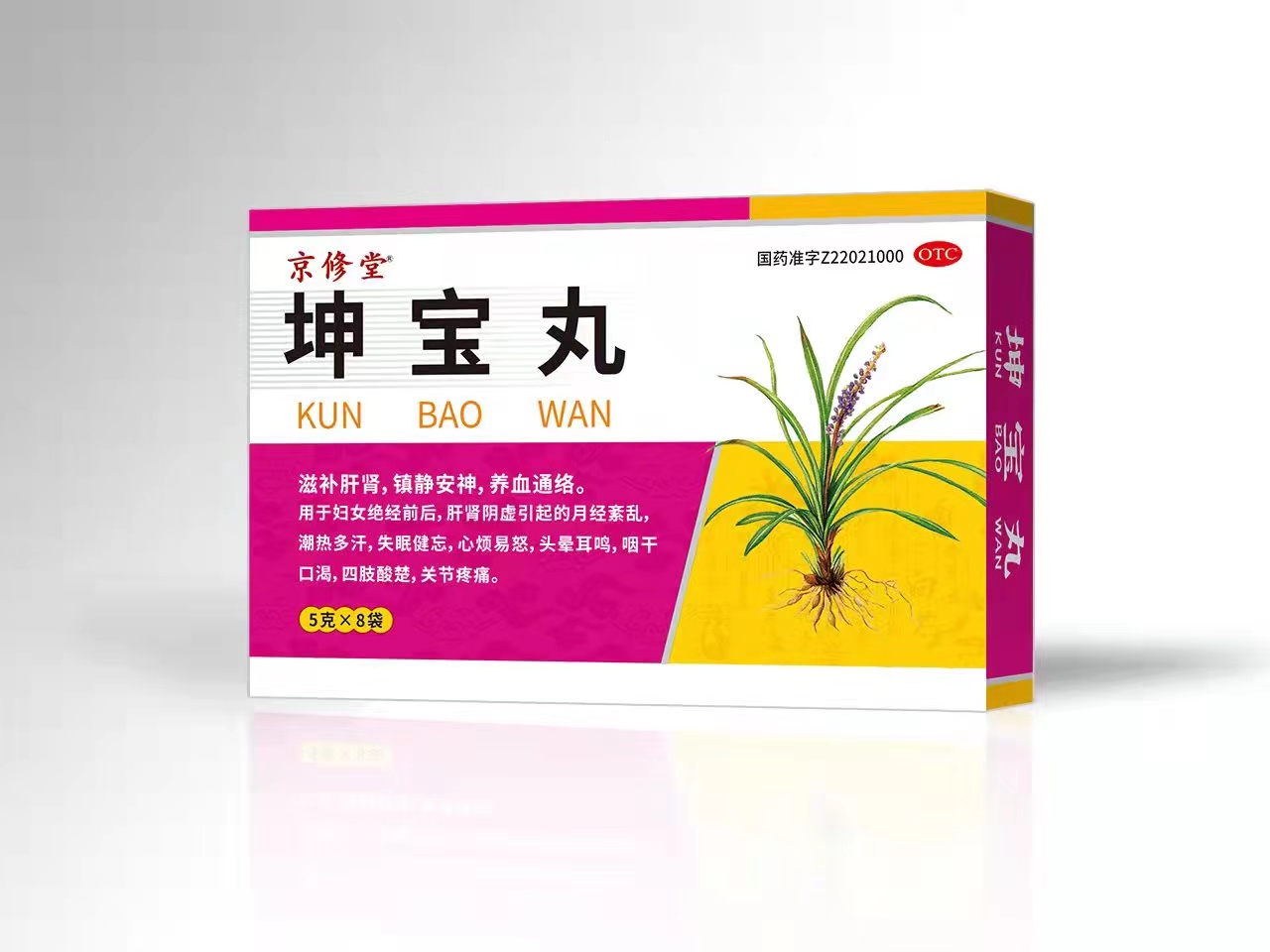功能主治:坤寶丸,滋補(bǔ)肝腎,鎮(zhèn)靜安神,養(yǎng)血通絡(luò)。用于婦女絕經(jīng)前后,肝腎陰虛引起的月經(jīng)紊亂,潮熱多汗,失眠健忘,心煩易怒,頭暈耳鳴,咽干口渴,四肢酸楚,關(guān)節(jié)疼痛。
