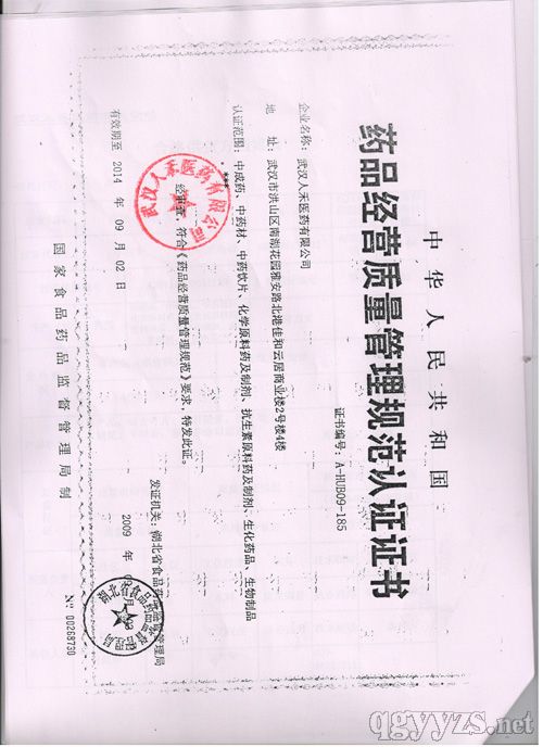 - 藥品經(jīng)營質(zhì)量規(guī)范認證證書